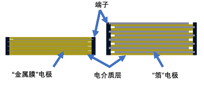 薄膜電容還會因為超過峰值電流限制而失效。這通常發生在金屬化薄膜類型中,因為它們的電極很薄,與外部連接很精細。許多薄膜型電容都有最大電壓變化率(dV/dt)的限制,這相當于通過器件的峰值電流的限制。